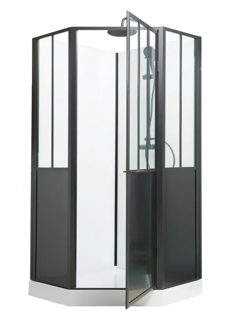 Cabine de douche 1/4 de cercle industrielle L.100 x l.100 cm, Artelo