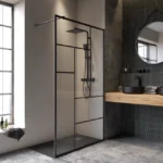 La paroi de douche STUDIO s’inscrit dans un style industriel avec ses profilés noirs mats en aluminium et sa sérigraphie qui rappelle les verrières. Elle est facile d’installation grâce à sa barre stabilisatrice recoupable et orientable, idéale en cas de mur non droit ou pour éviter une fenêtre ou tout autre obstacle. Elle est compatible avec le déflecteur REMIX d’une largeur de 40 cm, permettant une protection supplémentaire contre les projections d’eau. La gamme STUDIO se décline dans toute la salle de bain : meubles, vasques aux différentes formes et couleurs, robinet et colonne de douche… pour garantir un style coordonné et tendance à nos habitants. Garantie 10 ans.